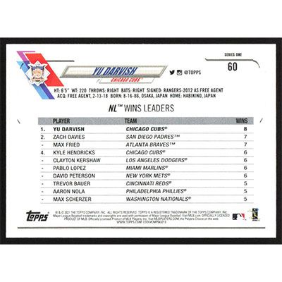 This is a 2021 Topps Rainbow Foil Yu Darvish League Leaders baseball card. The card is #60 and pictures show condition.