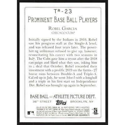 This is a 2021 Topps Turkey Red Robel Garcia baseball card. The card is #TR-23 and pictures show condition.