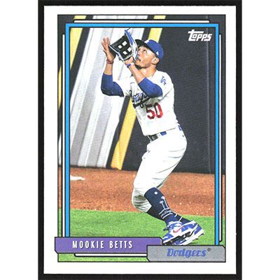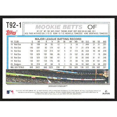 This is a 2021 Topps Update '92 Redux Mookie Betts baseball card. The card is #T92-1 and pictures show condition.
