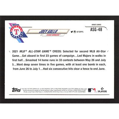 This is a 2021 Topps Update MLB All-Stars Joey Gallo baseball card. The card is #ASG-48 and pictures show condition.