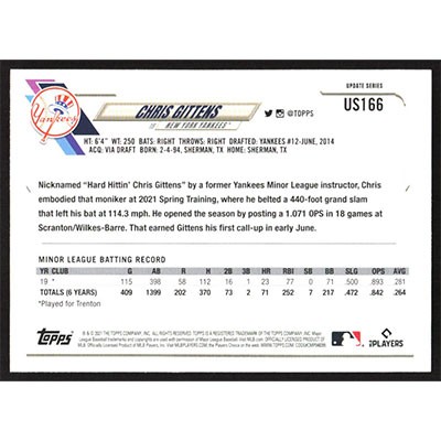 This is a 2021 Topps Update Chris Gittens baseball card. The card is #US166 and pictures show condition.