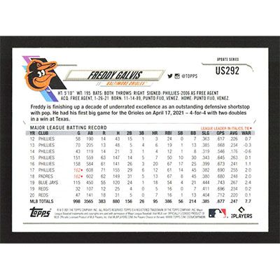 This is a 2021 Topps Update Freddy Galvis baseball card. The card is #US292 and pictures show condition.