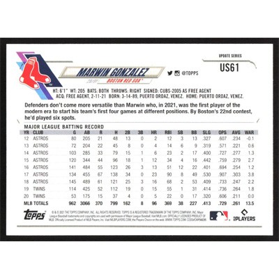 This is a 2021 Topps Update Marwin Gonzalez baseball card. The card is #US61 and pictures show condition.