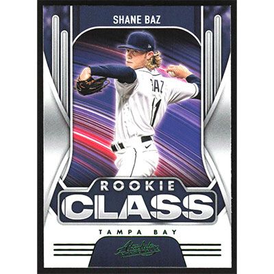 This is a 2022 Absolute Rookie Class Retail Green Shane Baz baseball card. The card is #RC-23 and pictures show condition.