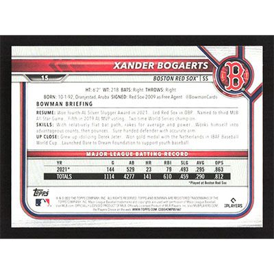 This is a 2022 Bowman Xander Bogaerts baseball card. The card is #15 and pictures show condition.