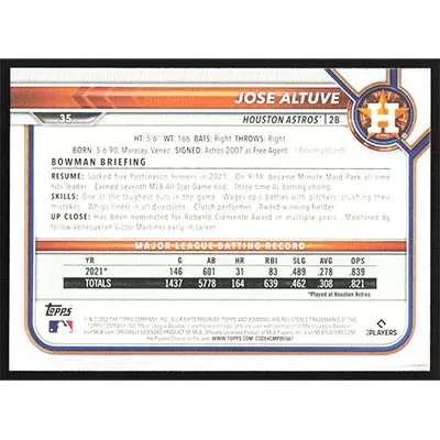 This is a 2022 Bowman Jose Altuve baseball card. The card is #35 and pictures show condition.
