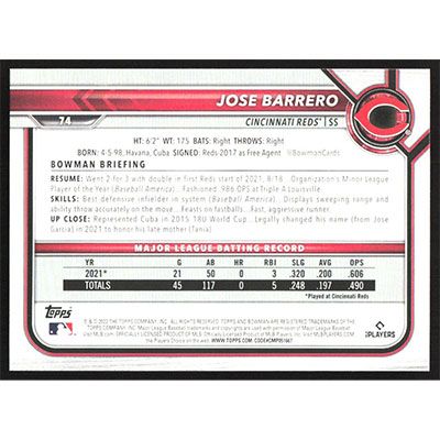 This is a 2022 Bowman Jose Barrero baseball card. The card is #74 and pictures show condition.