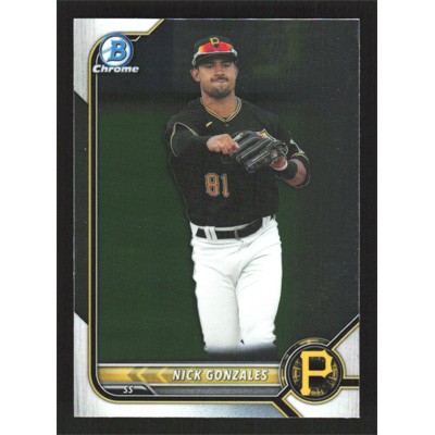 This is a 2022 Bowman Chrome Prospects Nick Gonzales baseball card. The card is #BCP-77 and pictures show condition.
