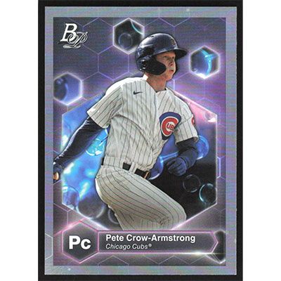 This is a 2022 Bowman Platinum Precious Elements Pete Crow-Armstrong baseball card. The card is #PE-26 and pictures show condition.