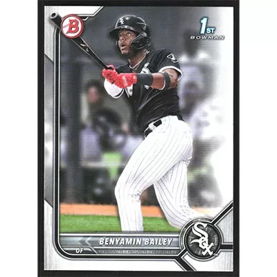 This is a 2022 Bowman Prospects Benyamin Bailey baseball card. The card is #BP-8 and pictures show condition.
