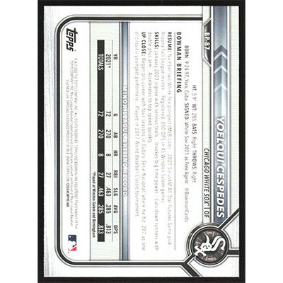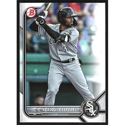 This is a 2022 Bowman Prospects Yoelqui Cespedes baseball card. The card is #BP-87 and pictures show condition.
