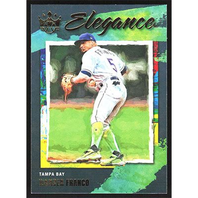 This is a 2022 Diamond Kings Elegance Wander Franco baseball card. The card is #E-6 and pictures show condition. Team(s): Tampa Bay Rays Rookie Card (RC)