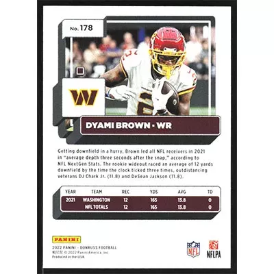This is a 2022 Donruss Dyami Brown football card. The card is #178 and pictures show condition.