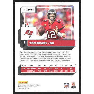 This is a 2022 Donruss Tom Brady football card. The card is #255 and pictures show condition.
