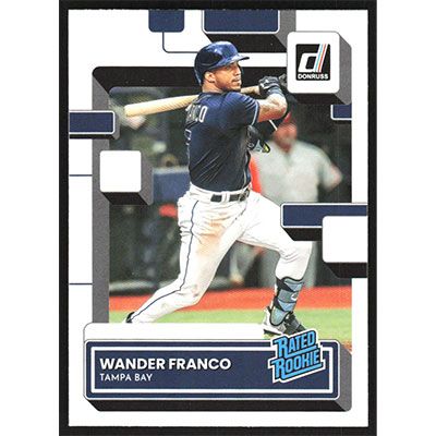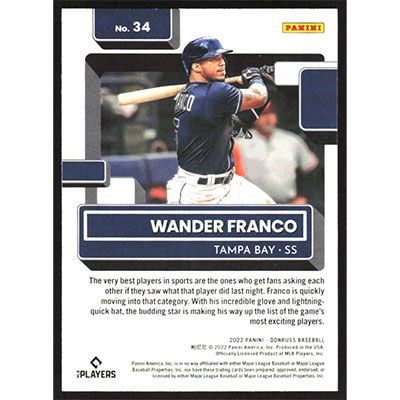 This is a 2022 Donruss Wander Franco Rated Rookie baseball card. The card is #34 and pictures show condition. Team(s): Tampa Bay Rays Rookie Card (RC)