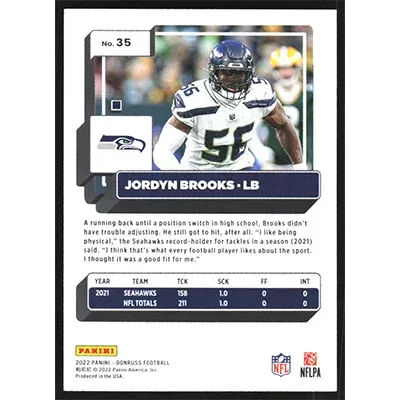 This is a 2022 Donruss Jordyn Brooks football card. The card is #35 and pictures show condition.