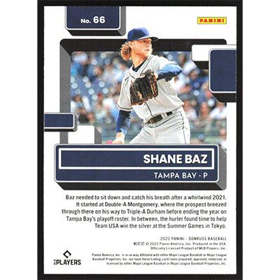 This is a 2022 Donruss Shane Baz Rated Rookie baseball card. The card is #66 and pictures show condition.