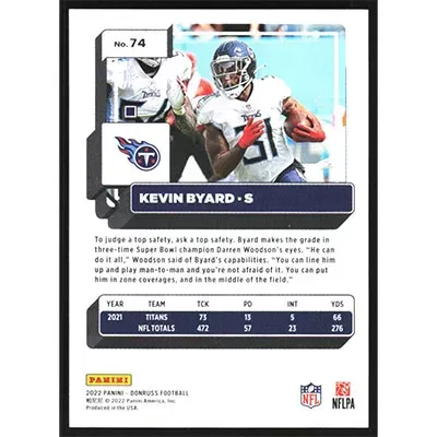 This is a 2022 Donruss Kevin Byard football card. The card is #74 and pictures show condition.