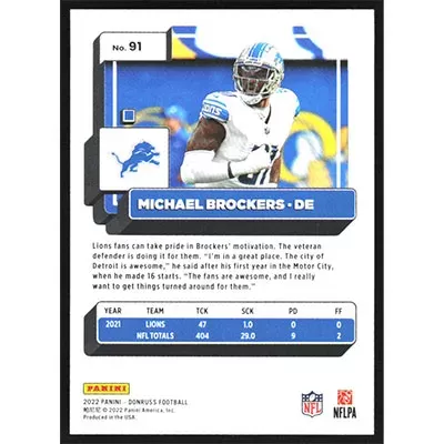 This is a 2022 Donruss Michael Brockers football card. The card is #91 and pictures show condition.