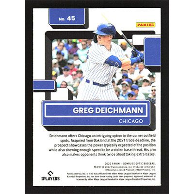 This is a 2022 Donruss Optic Greg Deichmann Rated Rookie baseball card. The card is #45 and pictures show condition. Team(s): Chicago Cubs Rookie Card (RC)