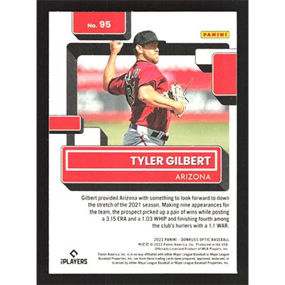 This is a 2022 Donruss Optic Tyler Gilbert Rated Rookie baseball card. The card is #95 and pictures show condition. Team(s): Arizona Diamondbacks Rookie Card (RC)