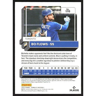 This is a 2022 Donruss Variations Bo Bichette baseball card. The card is #170 and pictures show condition.