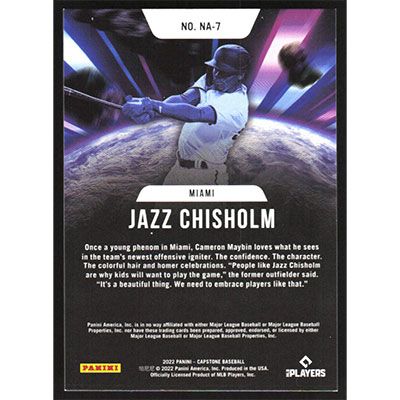 This is a 2022 Panini Capstone New Age Jazz Chisholm baseball card. The card is #7 and pictures show condition.