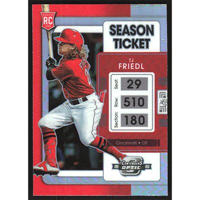 This is a 2022 Panini Chronicles Contenders Optic Holo TJ Friedl baseball card. The card is #16 and pictures show condition. Team(s): Cincinnati Reds Rookie Card (RC)
