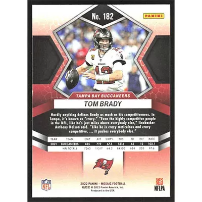 This is a 2022 Panini Mosaic Tom Brady football card. The card is #182 and pictures show condition.