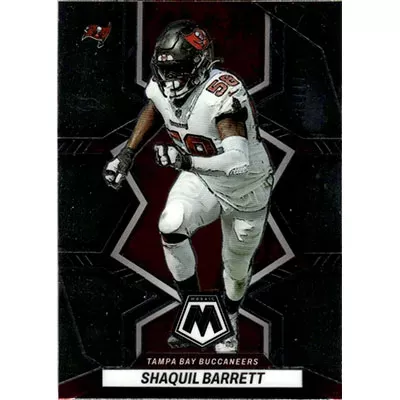 This is a 2022 Panini Mosaic Shaquil Barrett football card. The card is #187 and is in NM-MT condition.