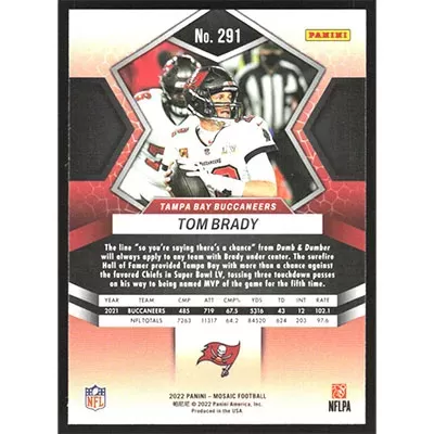 This is a 2022 Panini Mosaic Tom Brady Super Bowl LV MVP football card. The card is #291 and pictures show condition.