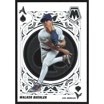 This is a 2022 Panini Mosaic Aces Walker Buehler baseball card. The card is #A-15 and pictures show condition.