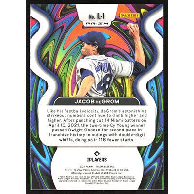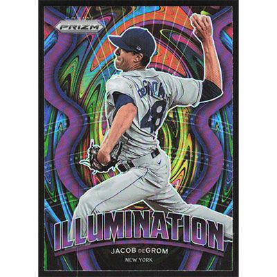 This is a 2022 Panini Prizm Illumination Silver Jacob deGrom baseball card. The card is #IL-1 and pictures show condition.