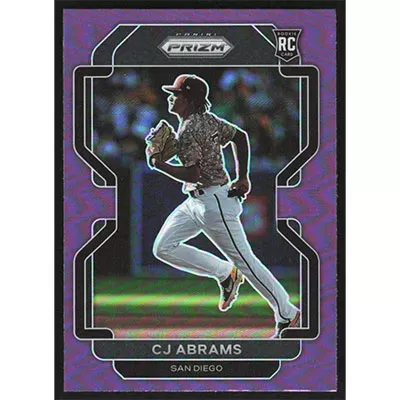 This is a 2022 Panini Prizm Purple CJ Abrams baseball card. The card is #12 and pictures show condition.