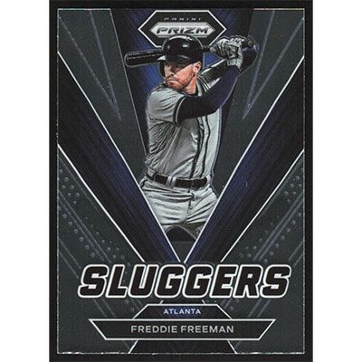 This is a 2022 Panini Prizm Sluggers Freddie Freeman baseball card. The card is #SL-9 and pictures show condition.