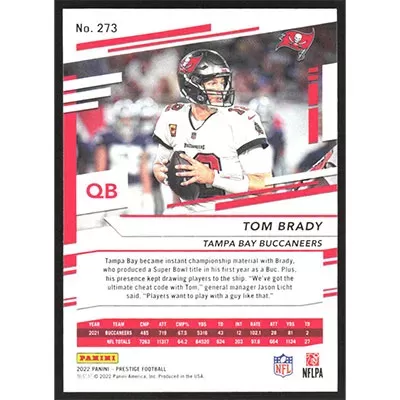 This is a 2022 Prestige Tom Brady football card. The card is #273 and pictures show condition.