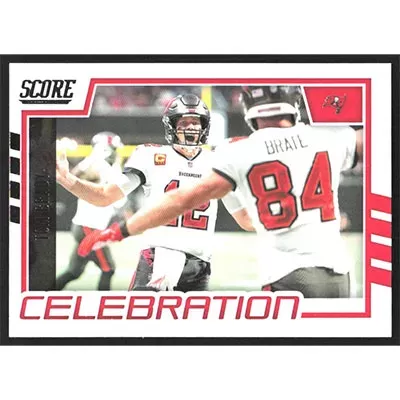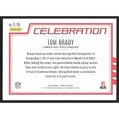 This is a 2022 Score Celebration Tom Brady football card. The card is #C-TB and pictures show condition.