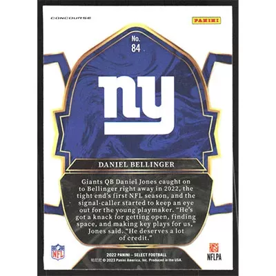 This is a 2022 Select Daniel Bellinger football card. The card is #84 and pictures show condition.