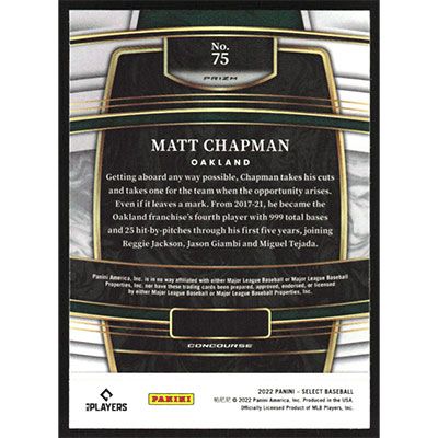 This is a 2022 Select Holo Matt Chapman baseball card. The card is #75 and pictures show condition.
