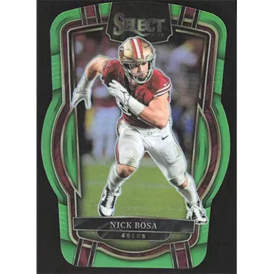 This is a 2022 Select Prizm Neon Green Die Cut Nick Bosa football card. The card is #214 and pictures show condition. This card is limited; #'d 057/299.