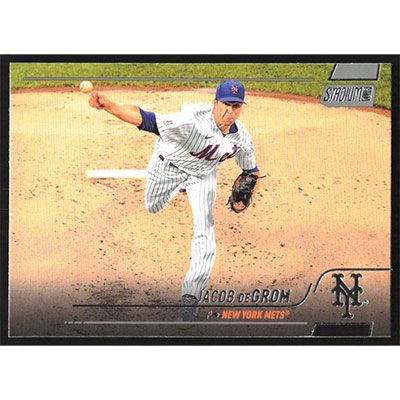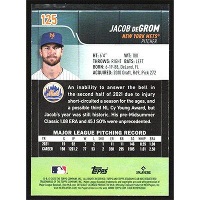 This is a 2022 Stadium Club Jacob deGrom baseball card. The card is #125 and pictures show condition.