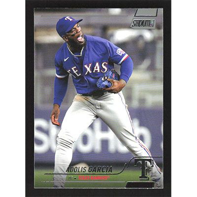 This is a 2022 Stadium Club Adolis Garcia baseball card. The card is #42 and pictures show condition.