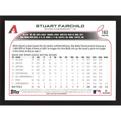 This is a 2022 Topps Stuart Fairchild baseball card. The card is #163 and pictures show condition.
