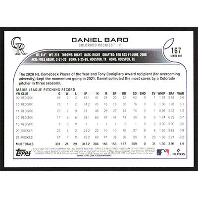 This is a 2022 Topps Daniel Bard baseball card. The card is #167 and pictures show condition.