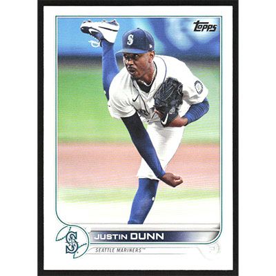 This is a 2022 Topps Justin Dunn baseball card. The card is #185 and pictures show condition.