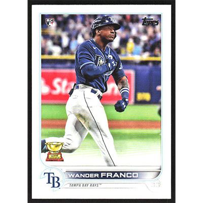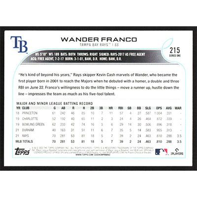This is a 2022 Topps Wander Franco baseball card. The card is #215 and pictures show condition.