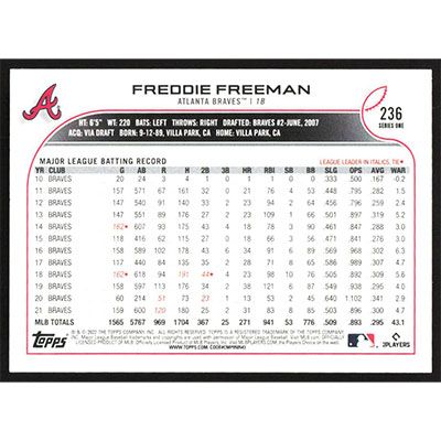 This is a 2022 Topps Freddie Freeman baseball card. The card is #236 and pictures show condition.