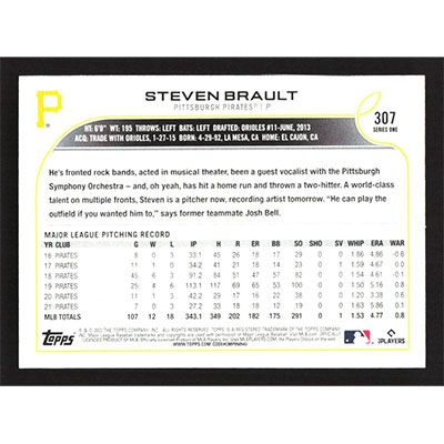 This is a 2022 Topps Steven Brault baseball card. The card is #307 and pictures show condition.