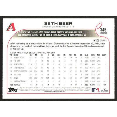 This is a 2022 Topps Seth Beer baseball card. The card is #345 and pictures show condition.