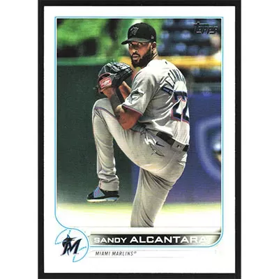 This is a 2022 Topps Sandy Alcantara baseball card. The card is #606 and pictures show condition.